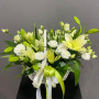 Корзина с белыми лилиями и эустомами в Подольске
