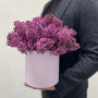 На фото сирень в шляпной коробке. В составе: сирень 11 шт, оазис флористический 1 шт, коробка (s) 0 шт, . Все цветы свежие и ароматные, букет красиво оформлен и отлично подходит для подарка. Доступна доставка цветов или самовывоз.